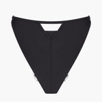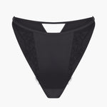 Our Obsession Silk and Lace Tanga in Black features classy silk and elegant lace. Cheeky-cut with a scalloped sheer lace edge on the front and a full silk backside with a seductive triangle cut. Thin adjusted straps. You can mix and match a set with an Obsession Bustier, Obsession Balconette, or Obsession Triangle in black.