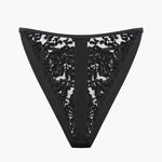 Our Pleasure Silk and Lace Tanga in Black is made from French lace and natural silk. Flirty cut with silk insert details in duet with floral lace at front and back. Thin adjusted straps. Create a set with our Pleasure Balconette in Black.